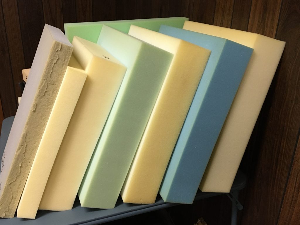 We offer various types of foam, for uses such as cushions and upholstery. We can custom cut them to fit your needs.